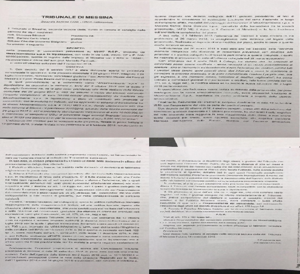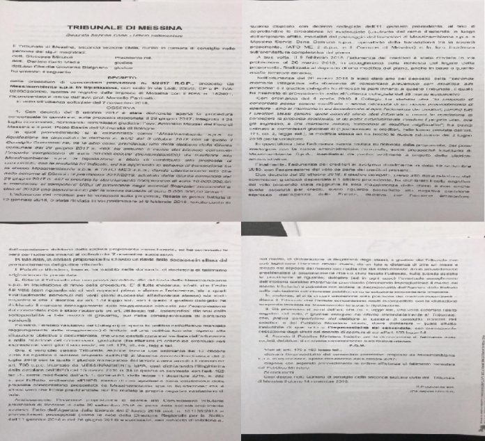 “BOCCIATO IL CONCORDATO PREVENTIVO DI MESSINAMBIENTE! A GIORNI SARÀ FORMALIZZATO IL FALLIMENTO DI MESSINA AMBIENTE”!