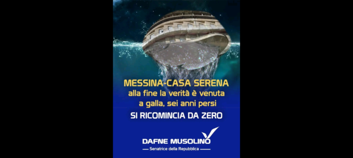 “Le rassicuranti dichiarazioni dell’Amministrazione Comunale di Messina su Casa Serena si scontrano contro la verità dei documenti prodotti dalla stessa amministrazione nel silenzio (fino ad ora) delle opposizioni”. Così in un Post di oggi 14 maggio 2024, Dafne Musolino, senatrice messinese di ‘Italia Viva’ presso ‘Palazzo Madama’ a Roma si è espressa in un suo Post pubblicato sulla sua omonima Pagina Facebook.