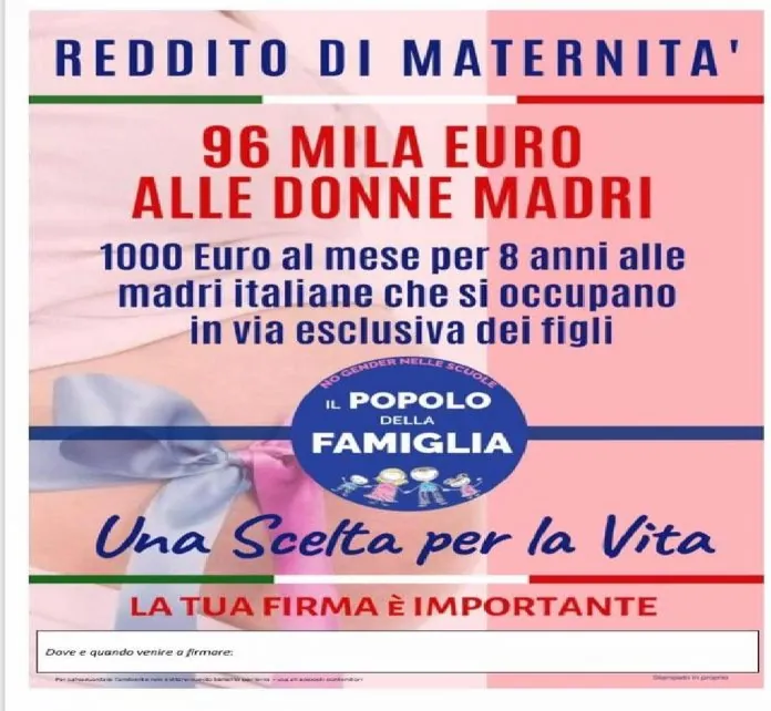L’impegno per il “Reddito di Maternità” de “Il Popolo della Famiglia”