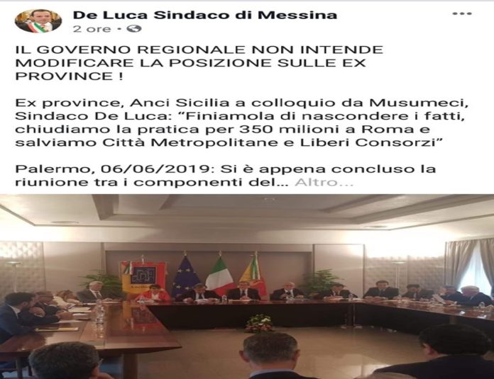 Lo riferiscono dal Movimento Liberi Insieme: “e come volevasi dimostrare e come comunica lo stesso sindaco di Messina, l’ordine del giorno festeggiato ieri come una vittoria da De Luca si è rivelato inutile e inefficace. Noi sulla battaglia per tutelare e difendere la dignità delle ex Province siamo con Cateno, ma cambi registro! C’è bisogno di politica vera, quella con la P maiuscola, di accordi ed interazioni con i vertici governativi”.