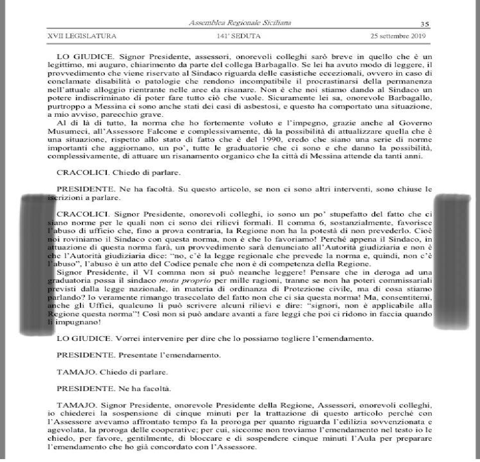 Prosegue, De Luca: “ho deciso di abbandonare il Parlamento siciliano anche per questo motivo…, non essere uno dei tanti criminali di intere generazioni massacrate dagli onorevoli deputati siciliani che parlano su tutto e spesso a vanvera intralciando le buone azioni che raramente approdano nel parlamento siciliano. Avevamo chiesto al Parlamento siciliano, di approvare una norma che consentisse al sindaco di Messina di poter agire più agevolmente rispetto ai casi più disperati esercitando quel ruolo, in verità già in parte disciplinato dalle normative generali, di massima autorità sanitaria locale”.