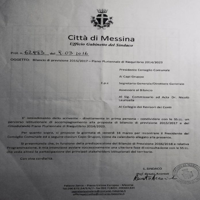 “Purtroppo gli errori politici della Giunta Accorinti sono eclatanti. Da guinness dei primati. La gestione della -sfiducia- nel febbraio scorso ne è stata un esempio paradigmatico. Eppure nel marzo 2016, meno di un mese prima che entrassi in Giunta, Renato aveva trovato la forza e la convinzione di sottoscrivere e firmare la lettera che qui riporto. Che non va assolutamente dimenticata”.