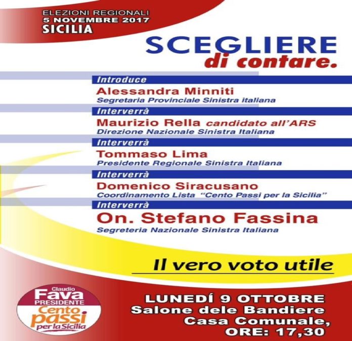 All’iniziativa, saranno presenti inoltre: “Alessandra Minniti (segretaria provinciale di Sinistra Italiana), Maurizio Rella (candidato all’ARS), Tommaso Lima (presidente regionale di Sinistra Italiana), Domenico Siracusano (del coordinamento afferente alla lista Cento Passi per la Sicilia).