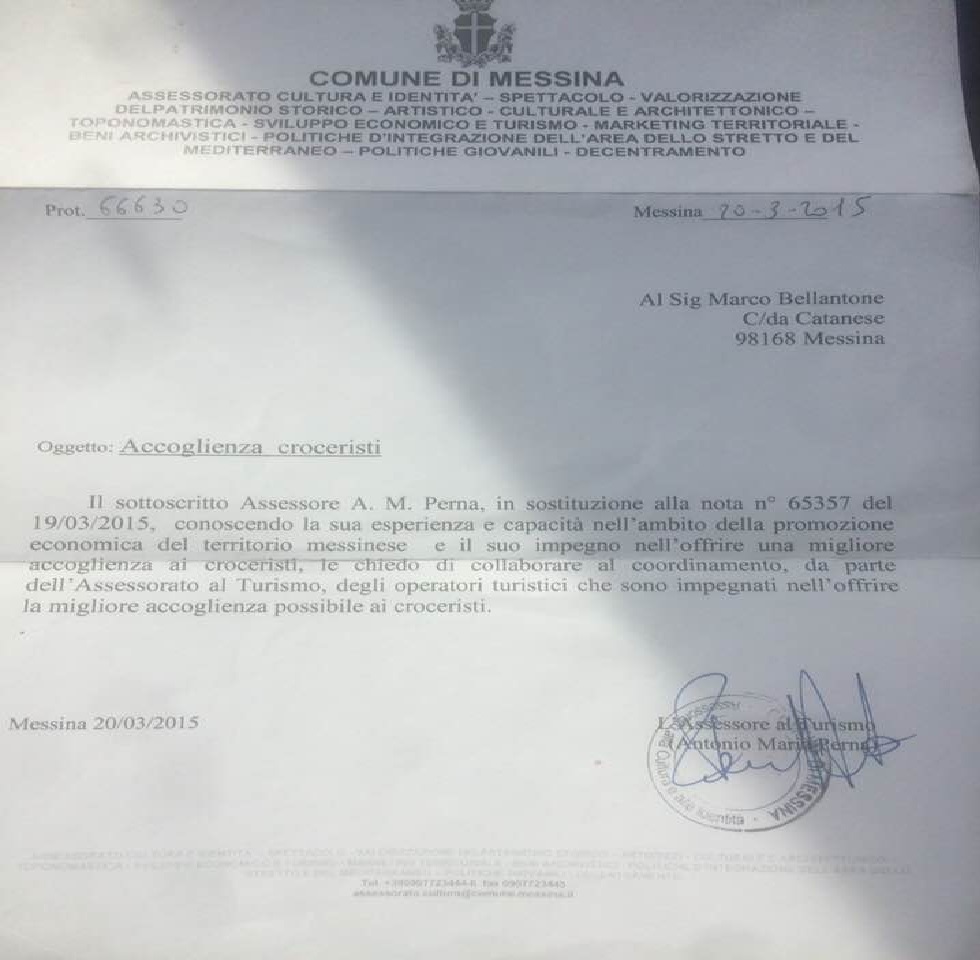 Bellantone, scrive: “buon giorno, al netto delle sciocche affermazioni che leggo sui giornali mi pregio di mostrare il documento che sanciva la mia collaborazione con l’assessore Perna, prima di scrivere gli articoli, ne avevo lungamente discusso con il signor Gambale, verificate quanto affermate, potreste incorrere in sgradevoli smentite, chiaro che questo ha un valore solo se tenete alla attendibilità del vostro giornale on line..! Buongiorno a Messina…”.