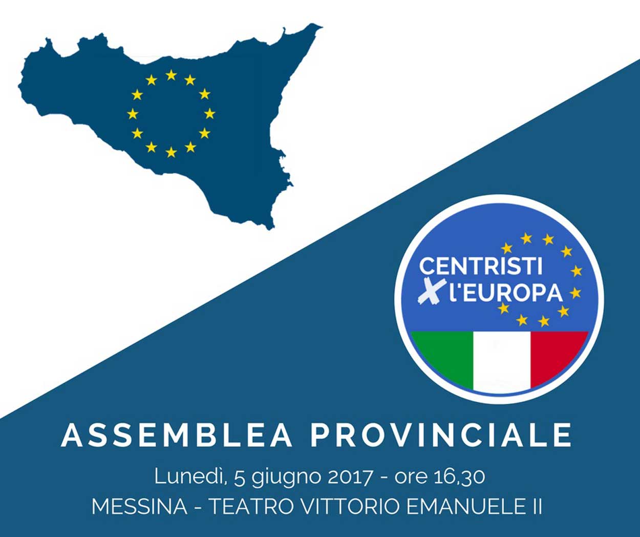 Si svolgerà lunedì 5 giugno, alle 16.30 nella Sala Sinopoli del Teatro Vittorio Emanuele a Messina, l’assemblea provinciale dei Centristi per l’Europa.