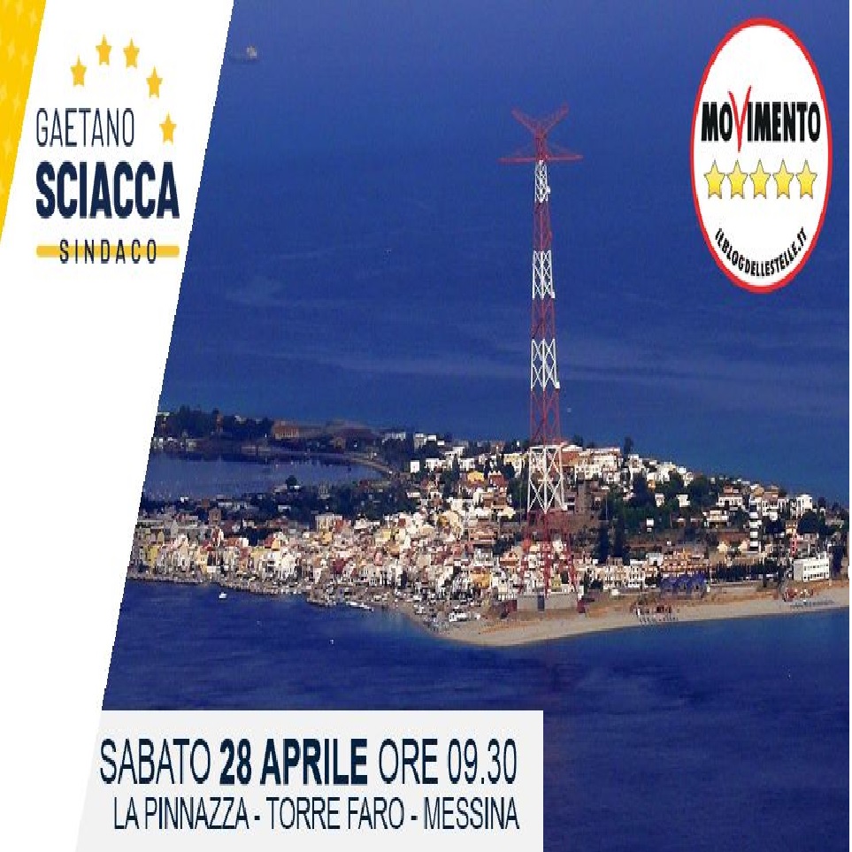 Un importante sodalizio politico, per pubblicizzare un incontro che si terrà nelle prossime ore, scrive: “a Torre Faro, sabato 28 aprile alle 9.30 del mattino ci vediamo presso il lido La Pinnazza per incontrare il candidato sindaco di Messina del MoVimento 5 Stelle, Gaetano Sciacca e parlare del futuro di questa città e delle elezioni comunali del 10 Giugno”.