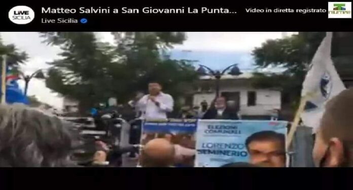 Nel pomeriggio di ieri, dopo le ore 17.15, il senatore Matteo Salvini segretario della Lega, e’ stato presente a San Giovanni la Punta (CT) per tenere un Comizio.