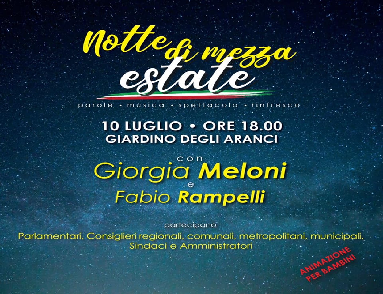 Oggi, 10 luglio alle 18: “hai appuntamento nella magica terrazza che accarezza Roma. Macherà solo Karola Rakete”, questo si puo’ leggere sulla pagina Facebook del parlamentare di Fratelli d’Italia, Fabio Rampelli.