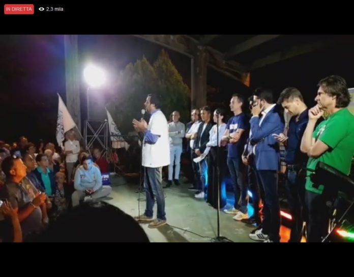 Salvini: “vediamo, se riusciamo a mettere insieme la gente perbene che vuole cambiare. Via, mafia, ‘ndrangheta e camorra. Nell’Italia che ho in testa io, non esiste più il modulo per iscrivere i figli all’asilo ed a scuola, dove c’è scritto genitore 1 e genitore 2”.