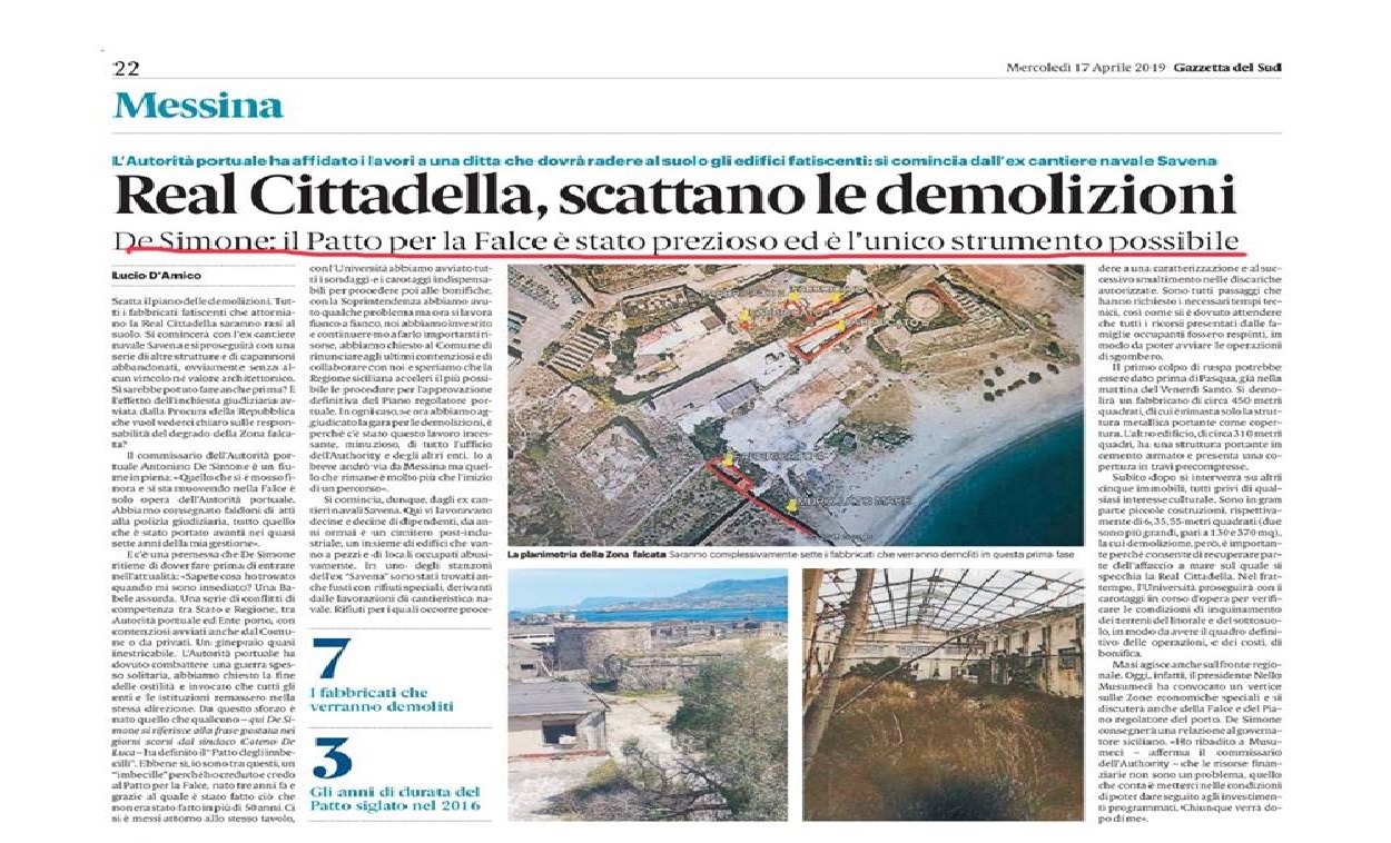 A parlare così, è Pietro Navarra, deputato nazionale del PD: “le dichiarazioni del Commissario dell’Autorità Portuale, Antonino De Simone, relative al Patto per la Falce, rilanciate oggi dagli organi d’informazione, rappresentano un’importante conferma. Sono la migliore testimonianza di come quell’atto, di cui – in veste di Rettore – nel 2016 fui promotore, costituisca l’unico passo concreto compiuto negli ultimi 50 anni per il recupero e la restituzione alla città della Zona Falcata”.