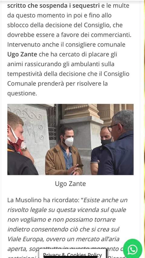 “Questa mattina, intorno alle ore 08.30, ho incontrato tanti ambulanti che manifestavano il proprio dissenso in modo pacifico”. Questo lo ha riferito oggi su Facebook, il consigliere comunale di Forza Italia a Messina, Dario Ugo Zante.
