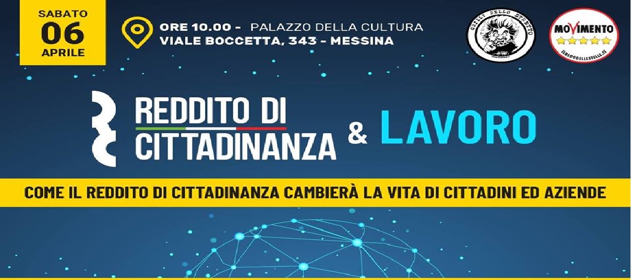 Reddito di Cittadinanza & Lavoro: il 6 aprile alle ore 10, la manifestazione del MoVimento 5 Stelle che si terrà presso il Palacultura di viale Boccetta a Messina.