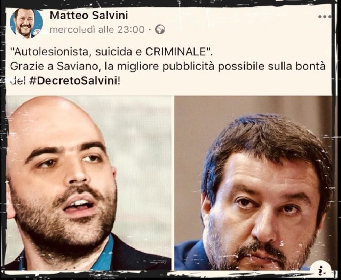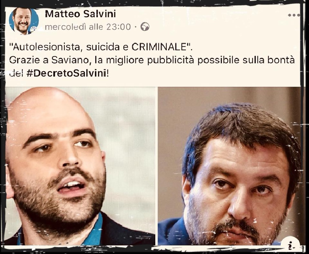 Parole dure, che accenderanno sicuramente gli animi, le ultime scritte (oggi su Facebook da Roberto Saviano contro Matteo Salvini) nel giorno in cui il Viminale ha deciso di dare una stretta sulle scorte: “mi scuso con il #MinistrodellaMalaVita perché mi era sfuggito il suo post di un paio di giorni fa… me lo hanno segnalato solo ieri. Approfitto però per dare al Ministro della Mala Vita un consiglio gratis, gratis per lui e gratis per voi che pagate, magari senza saperlo, i suoi -geniali- consulenti web (vai Matte’, oggi fai prima un post sul -negro stupratore- e invochi la castrazione chimica, poi a mezzogiorno attacchi la scrittrice sarda, sì Murgia; poi alle 16.00 il -fumettista di sinistra-… come non ti ricordi? Zerocalcare. Poi in tarda serata ringrazi il cantante che ha invocato la pena di morte e a fine giornata, non ti dimenticare, di’ al -santone Saviano- che se ti attacca ti fa un piacere. Sì lo so che non ti ha attaccato, ma facciamo traffico, quello lo segue un sacco di gente)”.