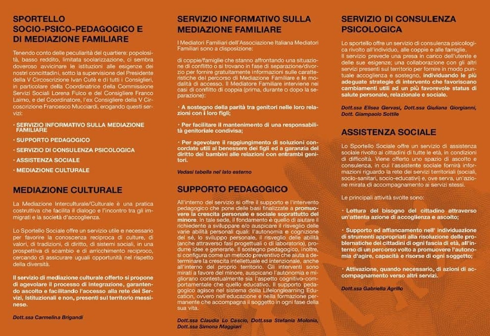 “Si avvisa la gentile utenza, che é sempre attivo presso la Sede della V Circoscrizione di Messina lo Sportello Socio-Psico-Pedagogico e di Mediazione Familiare”. Lo scrive oggi in una nota diffusa su Facebook, la consigliera di Quartiere… Lorena Fulco.