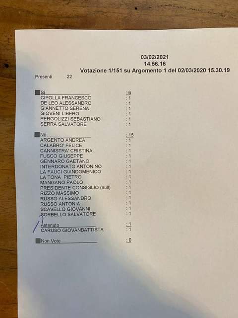 “In allegato l’esito dell’odierna votazione del consiglio comunale sulla mozione presentata dal consigliere Nello Pergolizzi -o il Sindaco De Luca o il direttore di asp Paolo La Paglia-“.