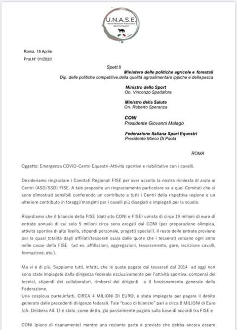“Vi riportiamo l’importante intervento, sottoscritto dal Presidente, Maurizio Falconiero, dell’Unione Nazionale Associazioni Sportive Equestri(UNASE) che, solo pochi giorni fa, ha stipulato un patto federale con il Nostro leader, Fabrizio Pignalberi”.