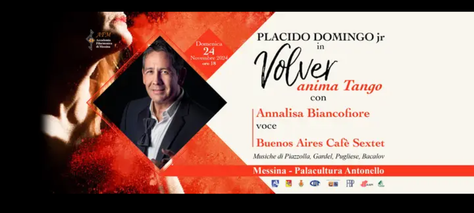𝐃𝐎𝐌𝐄𝐍𝐈𝐂𝐀 𝟐𝟒 𝐍𝐎𝐕𝐄𝐌𝐁𝐑𝐄 alle 𝐨𝐫𝐞 𝟏𝟖 al Palacultura Antonello da Messina, 𝐕𝐎𝐋𝐕𝐄𝐑, 𝐀𝐧𝐢𝐦𝐚 𝐓𝐚𝐧𝐠𝐨, spettacolo multidisciplinare fatto di Musica, Tango, Canto e momenti teatrali con protagonista il tenore 𝐏𝐥𝐚𝐜𝐢𝐝𝐨 𝐃𝐎𝐌𝐈𝐍𝐆𝐎 𝐣𝐫. che sarà affiancato dalla cantante e attrice 𝐀𝐧𝐧𝐚𝐥𝐢𝐬𝐚 𝐁𝐈𝐀𝐍𝐂𝐎𝐅𝐈𝐎𝐑𝐄, che dello spettacolo è regista e autrice.