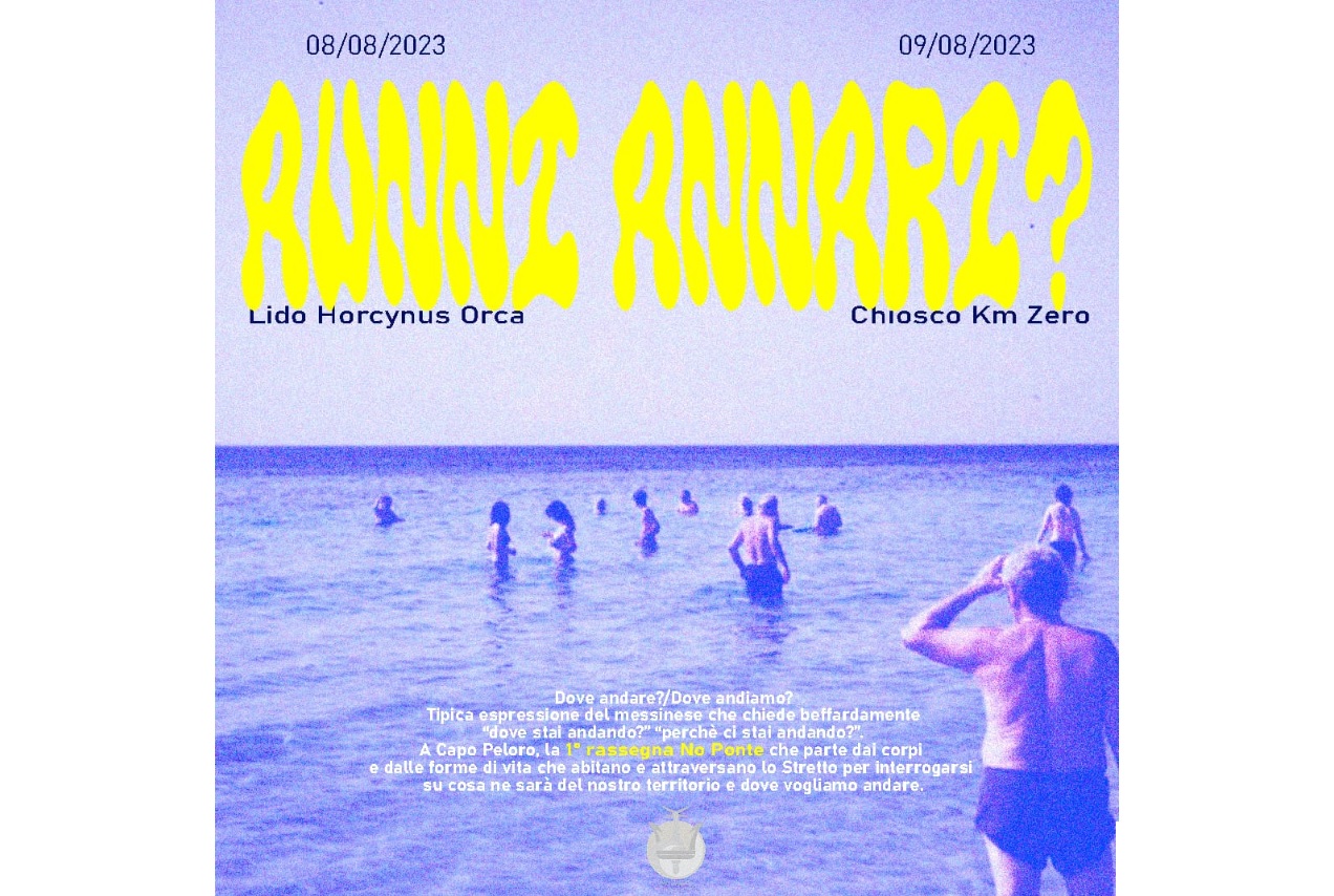 8 – 9 agosto “Aunni Annari”, Prima Rassegna No Ponte – Torre Faro, Lido “Horcynus Orca”/Ritrovo “Km Zero”: Il Comitato “No Ponte – Capo Peloro” presenta la prima rassegna No Ponte “Aunni Annari”, che si svolgerà a Torre Faro, al Ritrovo Km Zero e al Lido “Horcynus Orca”, martedì 8 e mercoledì 9 agosto dalle 17 all’1. La Rassegna nasce dall’esigenza delle e degli abitanti di Capo Peloro e della città di Messina di mostrare l’inutilità del Ponte partendo proprio dal luogo che verrà più intaccato dalla sua costruzione, Torre Faro.