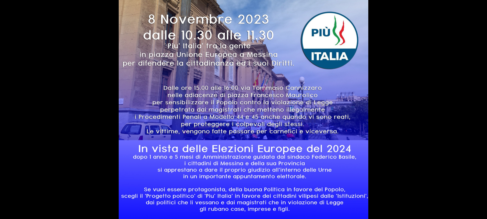 Conclude Pansera: “in vista delle Elezioni Europee del 2024 dopo 1 anno e 5 mesi di Amministrazione guidata dal sindaco Federico Basile, i cittadini di Messina e della sua Provincia si apprestano a dare il proprio giudizio all’interno delle Urne in un importante appuntamento elettorale. Se vuoi essere protagonista, della buona Politica in favore del Popolo, scegli il ‘Progetto politico’ di ‘Più Italia’ in favore dei cittadini vilipesi dalle ‘Istituzioni’, dai politici che li vessano e dai giudici che violando le norme, il Codice Civile, il Codice Penale, il Codice di Procedura Civile ed il Codice di Procedura Penale… gli rubano case, imprese e figli”.