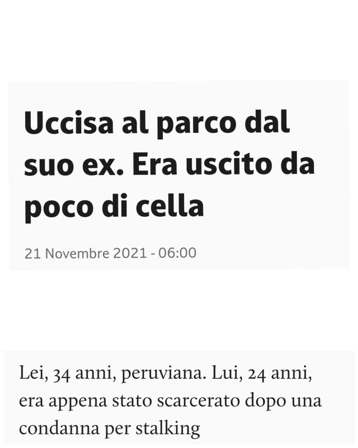 Ha aggiunto la Giannone: “quante donne ancora devono essere uccise affinché si comprenda che gli uomini violenti non cambieranno mai? Perché si comprenda che questi mostri devono essere tenuti sotto controllo, ma non solo sulla carta! Investimenti di milioni di Euro da anni per il recupero degli uomini maltrattanti con percorsi che molte volte evitano loro anche il carcere; investimenti che dovevano essere destinati all’acquisto e all’uso di braccialetti elettronici. E tutte le volte in cui le denunce vengono archiviate perché chi le valuta sminuisce la pericolosità dell’individuo denunciato? Tutte le volte che vengono archiviate perché le donne non vengono credute? Tutte le volte in cui non sono prese in considerazione? Solo un anno fa l’Europa si è nuovamente detta estremamente preoccupata per l’archiviazione delle denunce di violenza in Italia. Troppe, veramente troppe. E seppur al Parlamento italiano era stato chiesto di avviare controlli e il monitoraggio della situazione, nulla è cambiato”.