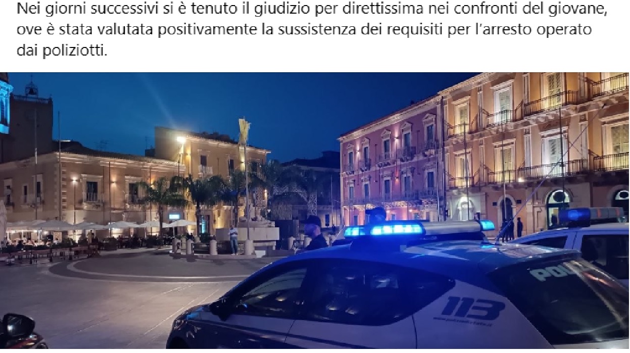 Il giovane arrestato era stato posto ai domiciliari per furto aggravato a disposizione dell’A.G. ma, incurante degli obblighi derivanti dalla misura precautelare, il mattino successivo si allontanava arbitrariamente dall’abitazione non facendosi trovare a casa dai poliziotti del Commissariato di P.S. di Comiso che effettuavano un controllo. La Volante, quindi, si metteva alla ricerca dello straniero che veniva rintracciato nel centro storico di Comiso, lontano dalla sua abitazione e senza autorizzazione alcuna del Giudice. Per questo motivo veniva nuovamente tratto in arresto dalla Polizia di Stato per evasione in flagranza e su disposizione dell’ Autorità Giudiziaria posto nuovamente agli arresti domiciliari.