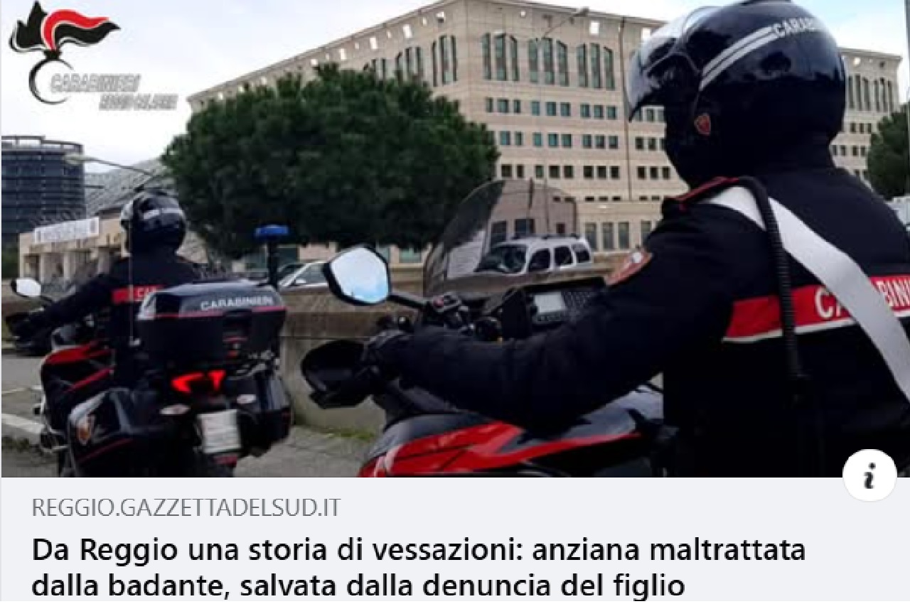 A Reggio Calabria, un’anziana di 83 anni ha vissuto per mesi un incubo fatto di maltrattamenti e sofferenze per mano della sua badante, una donna ucraina di 59 anni: quella che sarebbe dovuta essere una figura di sostegno e aiuto si è invece trasformata in tutt’altro, sottoponendola a violenze fisiche e psicologiche quotidiane.
