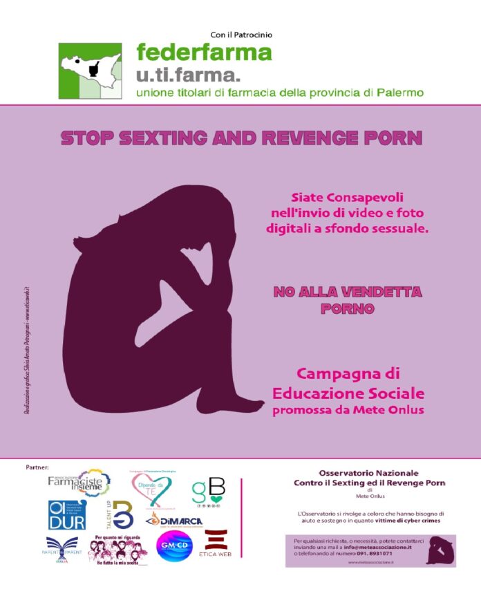 Ad un anno dall’avvio nelle scuole siciliane – e ora ripresa negli istituti di tutto il Paese – , parte dalle farmacie di Palermo e provincia, per estendersi poi a tutte le 19mila farmacie italiane, la campagna di sensibilizzazione “Stop Sexting and Revenge porn” per contrastare il fenomeno che, per quanto riguarda il Sexting, è diffuso soprattutto nelle scuole medie inferiori siciliane nelle quali i Sex offender trovano terreno fertile, tramite i social, per contattare gli adolescenti ed ottenere immagini a sfondo sessuale in cambio di soldi o regali; mentre il Revenge porn risulta più diffuso nelle scuole medie superiori. L’iniziativa è dell’organizzazione Mete onlus, presieduta da Giorgia Butera, con il patrocinio di Federfarma Palermo.
