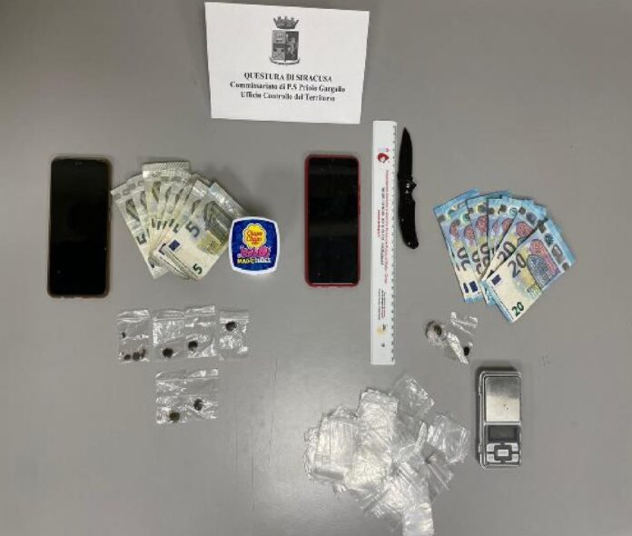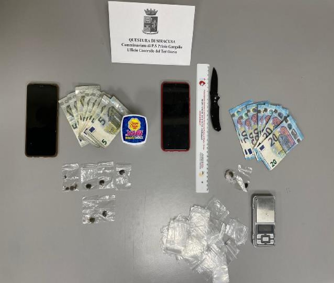 Entrambi, pertanto, venivano denunciati per possesso ai fini dello spaccio di sostanze stupefacenti ed, uno di loro, anche per porto illegale di un coltello a serramanico.