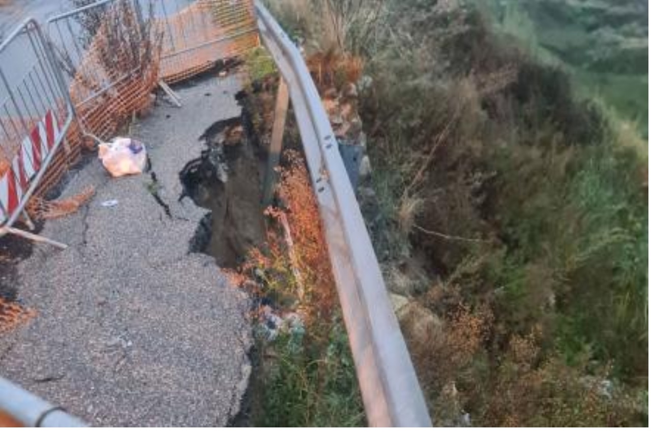 L’area in questione è caratterizzata da un ripido versante sul quale, nel corso degli anni, si è sviluppato uno smottamento degradante che le piogge intense hanno acuito sensibilmente, coinvolgendo anche il piano viabile asfaltato. Sono ben visibili le crepe e gli scorrimenti superficiali che ne hanno compromesso l’assetto e la stabilità generale.