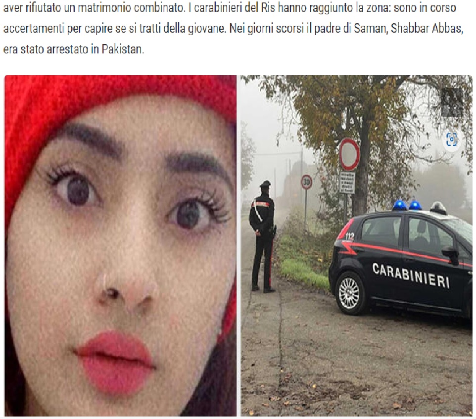 Alcuni resti umani sono stati trovati a Novellara (Reggio Emilia) non lontano dal casolare dove viveva la famiglia di Saman Abbas, la 18enne pakistana scomparsa la notte del 30 aprile 2021 dopo aver rifiutato un matrimonio combinato.