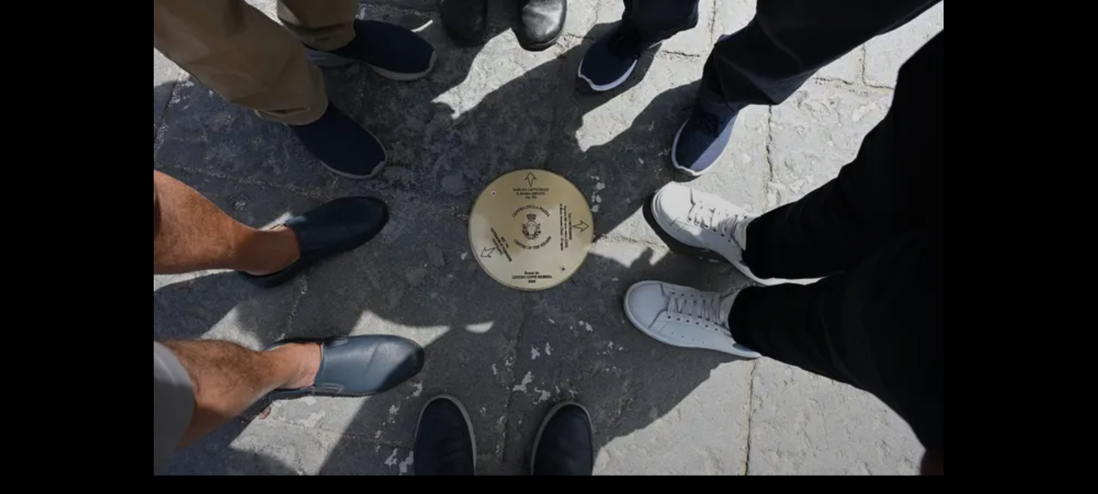 Per rendere visibile e riconoscibile questo snodo simbolico a cittadini e turisti, è stato collocato al Centro del quadrilatero un disco in ottone inciso, del diametro di 25 cm, realizzato e donato dalla ditta “Centro Coppe”, rappresentata da Giuseppe Damiano Grosso. Il disco, posato alla maniera delle “pietre d’inciampo”, invita alla riflessione e alla riscoperta del legame tra la città e i suoi riti secolari. Numerosi turisti, incuriositi dalla novità, si sono avvicinati per immortalare il luogo con fotografie ricordo, nell’attesa del tradizionale carosello di mezzogiorno del Campanile.