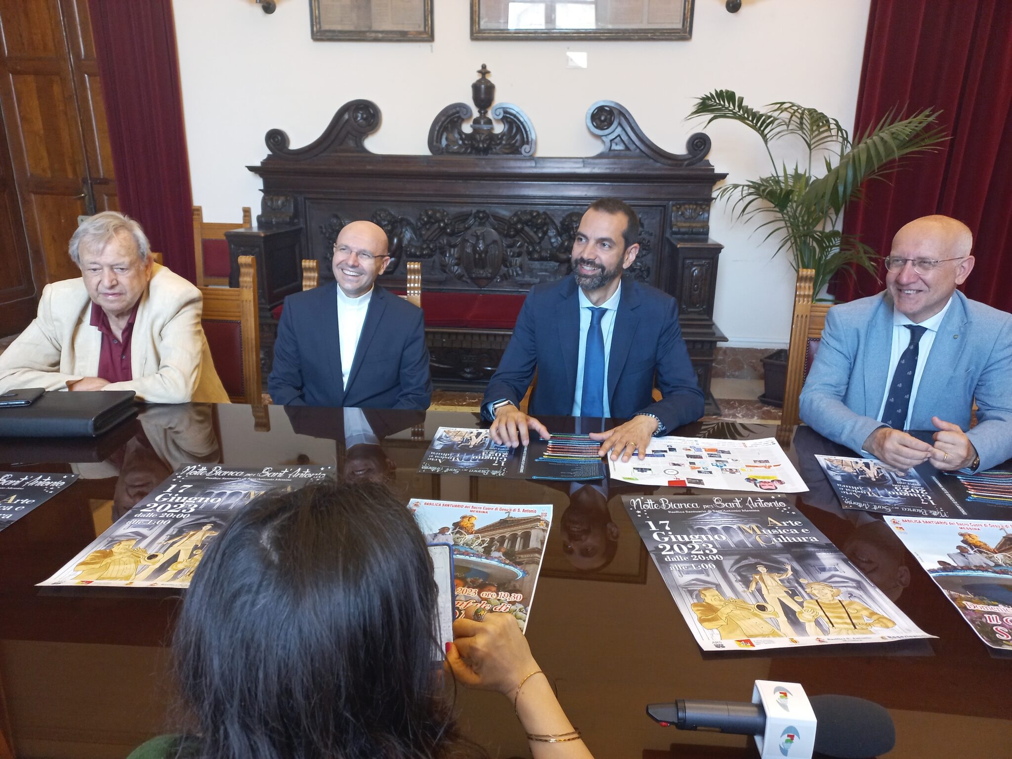 Alla presenza del sindaco Federico Basile e dell’assessore alla Cultura Vincenzo Caruso, è stato illustrato oggi a palazzo Zanca il calendario delle manifestazioni religiose e civili in onore di S. Antonio di Padova, nell’ambito della “Notte bianca per S. Antonio” e della tradizionale Processione del Carro Trionfale. L’evento, promosso dal rettore della Basilica padre Mario Magro e condiviso dall’Amministrazione comunale, prevede numerose iniziative con il contributo organizzativo dell’assessore Massimo Finocchiaro.