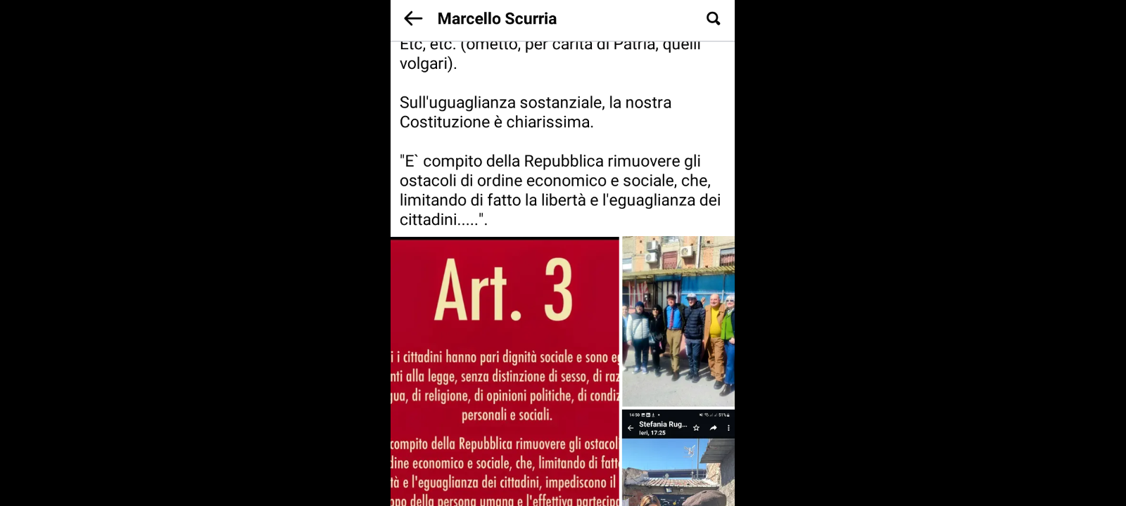 Ha concluso Scurria: “sull’uguaglianza sostanziale, la nostra Costituzione è chiarissima… ‘E` compito della Repubblica rimuovere gli ostacoli di ordine economico e sociale, che, limitando di fatto la libertà e l’eguaglianza dei cittadini…'”.