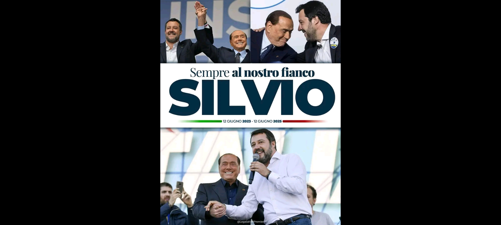 “Amico mio, ci manchi”. A due anni di distanza dalla morte dell’ex presidente del Consiglio dei ministri Silvio Berlusconi (fondatore di Forza Italia), lo ha ricordato attraverso un Post pubblicato sulla sua omonima Pagina Facebook… il vicepremier leghista del Governo guidato da Giorgia Meloni, il senatore Matteo Salvini.