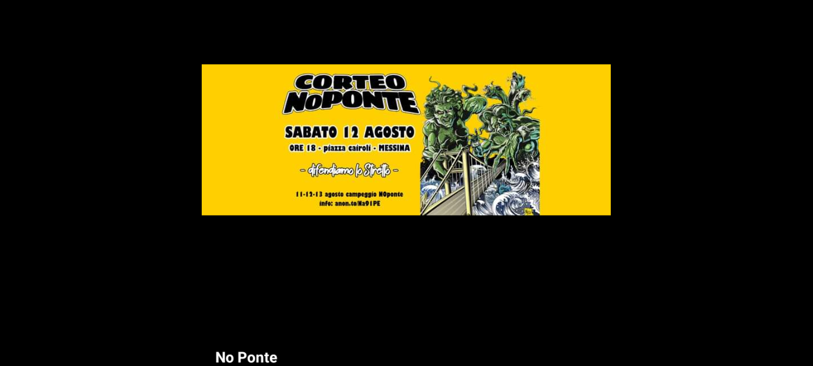 Ed ancora: “al CORTEO NO PONTE – 12 agosto – Messina scendiamo in strada per ribadire il nostro disaccordo a questo mega-scempio che è il ponte sullo Stretto. Scendiamo in strada per ribadire che il PONTE non è un problema che riguarda solo gli abitanti delle due sponde dello Stretto, ma un dispositivo prima di tutto economico che sottrae risorse a tutte le popolazioni portando avanti un modello di sviluppo obsoleto, distruttivo e insostenibile”.
