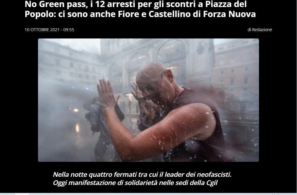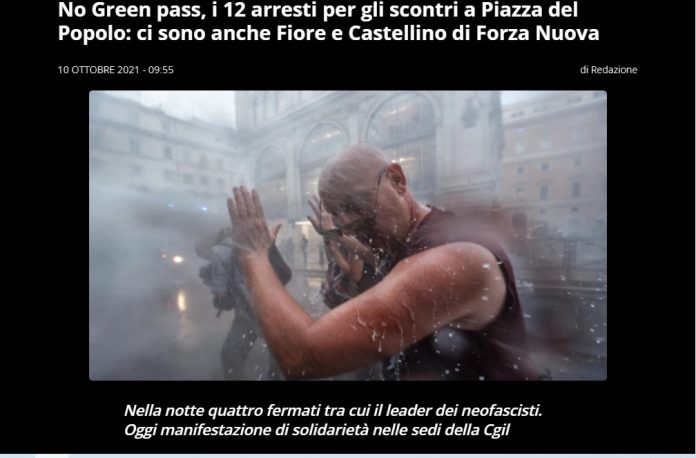 Arrestate nel corso della notte 12 persone coinvolte negli scontri di ieri a piazza del Popolo a Roma nella manifestazione dei No Green Pass. Fra loro i vertici di Forza Nuova Giuliano Castellino e Roberto Fiore.