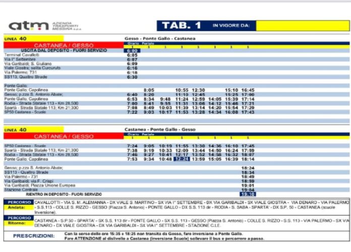 ATM Messina d’intesa con l’Amministrazione comunale da domani, sabato 12 agosto, attiverà in via sperimentale una nuova linea, la n. 40, denominata “Castanea-Gesso”.