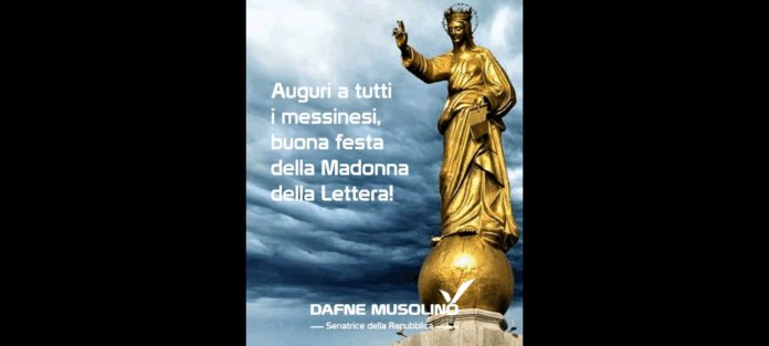 ‘Auguri alla mia Messina che oggi festeggia la sua Patrona, la Madonna della Lettera: Messina è una Città mariana, posta sotto la protezione della Vergine Maria che infatti accoglie i visitatori sulla stele posizionata all’imboccatura del porto storico, costruita nel 1934, nella cui base figura la benedizione “Vos et ipsam civitatem benedicimus” rivolta alla Città e a tutti i naviganti che vi arrivano’. Lo riferisce in data odierna, attraverso un Post pubblicato sulla sua omonima Pagina Facebook, l’avvocato Dafne Musolino, senatrice messinese del ‘Gruppo di Italia Viva’ presso ‘Palazzo Madama a Roma’!