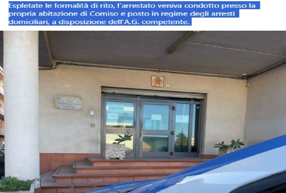 L’uomo, non nuovo a tali violazioni, negli ultimi anni è stato più volte denunciato e tratto in arresto per il medesimo reato. Espletate le formalità di rito, l’arrestato veniva condotto presso la propria abitazione di Comiso e posto in regime degli arresti domiciliari, a disposizione dell’A.G. competente.