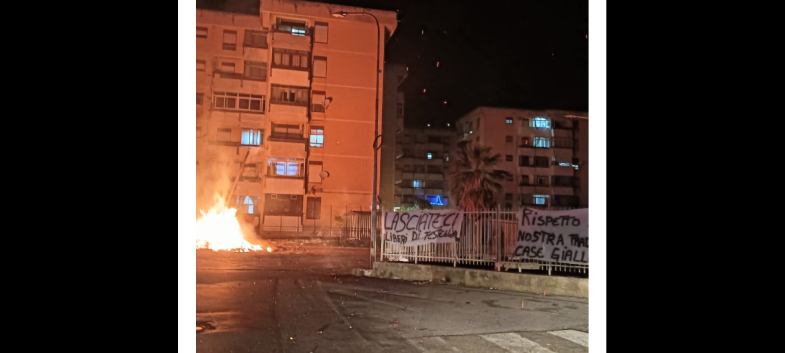‘Blitz preventivi, raccomandazioni e striscioni esposti: tutto questo ha condito la vigilia alle Case Gialle di Bordonaro a Messina… dopo la mezzanotte, però, il grande falò che era stato preparato è divampato ancora una volta… come sempre’.