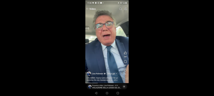 “Calabria: Siamo tutti complici? Di un sistema che sta massacrando questa Regione… ultimo appello alle persone perbene… QUESTO È UN PAESE CORROTTO! l’Italia è il paese più CORROTTO d’Europa, insieme alla Romania… dal Colosseo, al calcio ai videogiochi, tutto ha uno scopo preciso… distrarre il popolo nei periodi di crisi”! A scriverlo oggi, sulla sua omonima Pagina Facebook, è stato il conduttore calabrese Lino Polimeni.