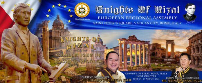 Sarà la Città di Roma ad ospitare , dal 26 al 28 giugno l’8a Assemblea Regionale Europea (ERA) dei Cavalieri di Rizal (KOR) come approvato dalla Regione Europea e dal Consiglio Supremo.