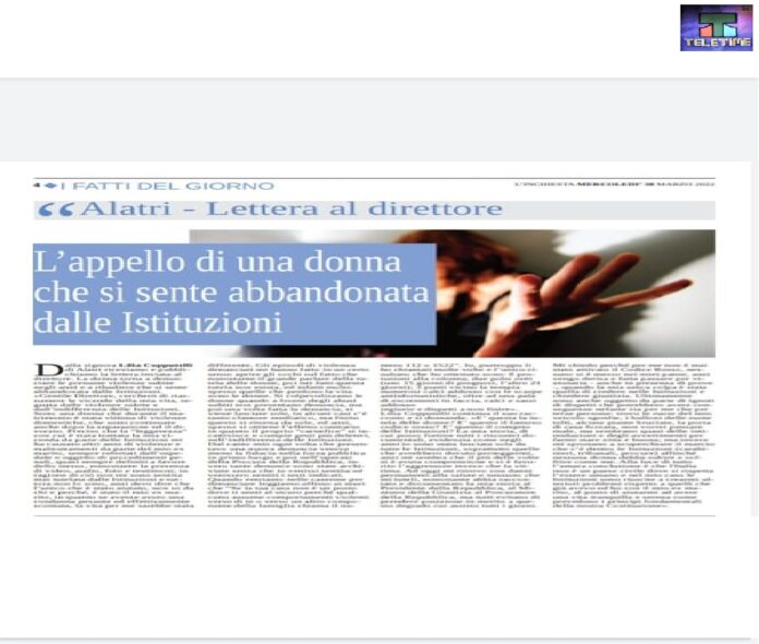 “Cercherò di riassumere le vicende della mia vita, segnata dalle violenze subite e dall’indifferenza delle Istituzioni”. Così si esprime in un suo testo scritto durante queste settimane, Lilia Copputelli di Alatri (Frosinone).