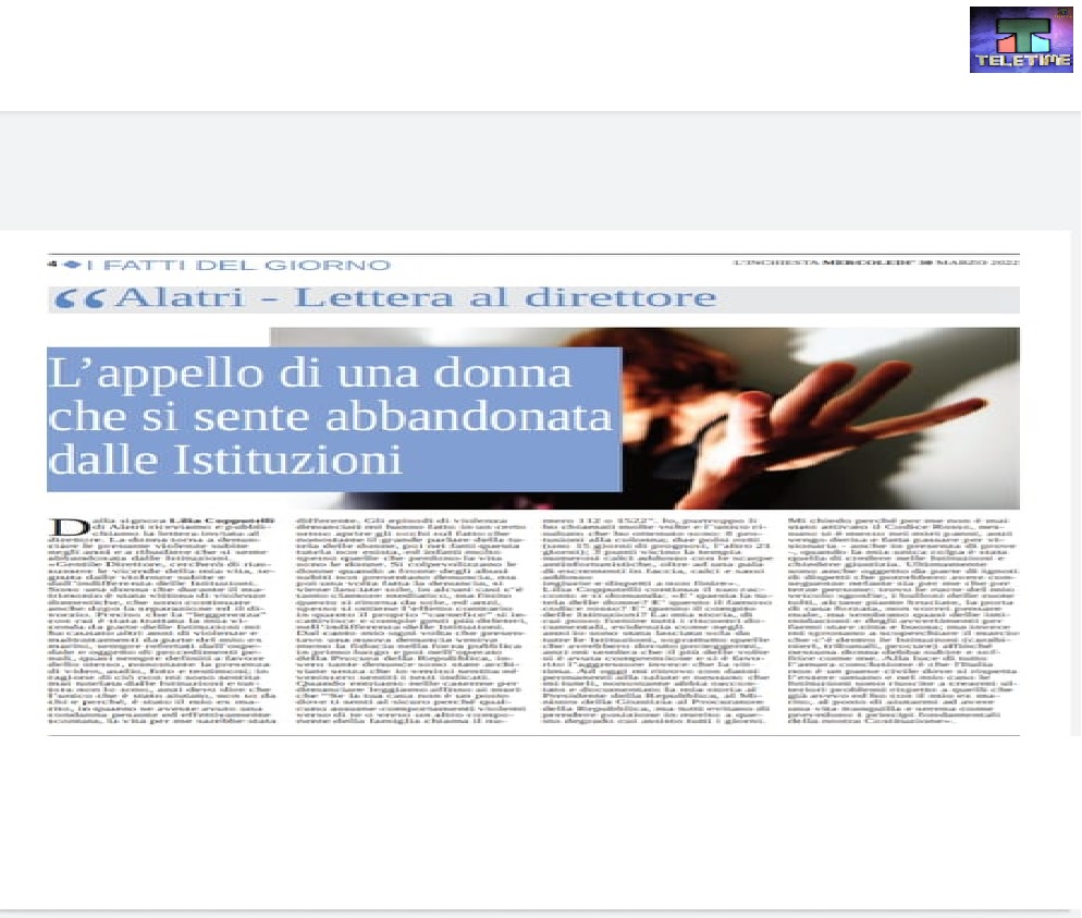 Specifica la Copputelli: “la mia storia, di cui posso fornire tutti i riscontri documenti, evidenzia come negli anni io sono stata lasciata sola da tutte le istituzioni, sopra quelle che avrebbero dovuto proteggermi, anzi mi sembra che il più delle volte si è avuta comprensione e si è favorito l aggressore invece che la vittima. Ad oggi mi ritrovo con danni permanenti alla salute e nessuno che mi tuteli, nonostante abbia raccontato e documentato la mia storia al -Presidente della Repubblica-, ma tutti evitano di prendere posizione in merito a questo -degrado- cui assisto tutti i giorni. Mi chiedo perché per me non è stato attivato il Codice Rosso, nessuno si è messo nei miei panni, anzi vengo derisa e fatta passare per visionaria… – anche in presenza di prove-, quando la mia unica colpa è stata quella di credere nelle istituzioni e chiedere giustizia. Ultimamente sono anche oggetto da parte di ignoti di dispetti che potrebbero avere conseguenze nefaste sia per me che per terze persone…, trovo le ruote del mio veicolo sgonfie, i bulloni delle ruote tolti, alcune piante bruciate, la porta di casa forzata, non vorrei pensare male, ma sembrano quasi delle intimidazioni e degli avvertimenti per farmi -stare zitta e buona-“.