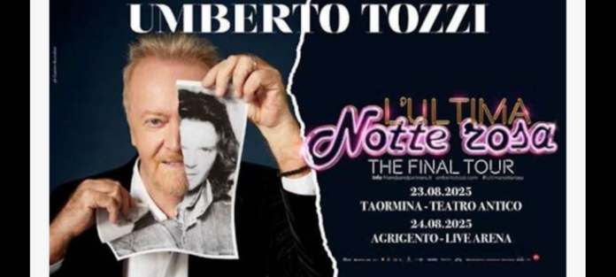 Cinquant’anni di carriera, più di 80 milioni di dischi venduti, oltre 2000 concerti in tutto il mondo, e una lunga scia di successi che hanno fatto la storia della musica italiana: Umberto Tozzi celebra il mezzo secolo di attività artistica con “L’ultima Notte Rosa – The Final Tour”, una tournée mondiale che attraversa quattro continenti e che, a grande richiesta, aggiunge nuove date estive.