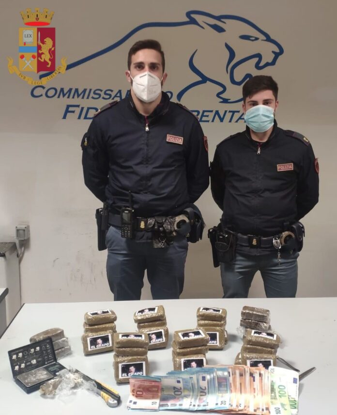 I poliziotti, all’interno della city car, hanno trovato 27 panetti di “fumo”, tutti dal peso di circa un etto, 30 dei quali con l’effige del famoso narcotrafficante messicano. Gli stessi agenti, insieme ai colleghi del III Distretto Fidene, diretto da Fabio Germani, hanno svolto alcune perquisizioni domiciliari a carico del fermato: in una delle abitazioni utilizzate da D.M. sono stati sequestrati 2800 euro in contanti, alcuni frammenti di hashish ed il materiale per il confezionamento della droga.