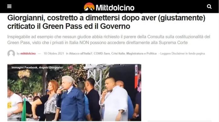 Ben sapendo che – tra gli altri – sarebbero proprio i giudici a dover sollevare eccezione di Costituzionalità sulle leggi; mentre sul Green Pass nessuno lo sta facendo, incastrati tra mille procedure e carriere particolari (…). Dunque, un giudice onesto come Giorgianni, che mette in risalto l’assurdità della situazione attuale relativamente al COVID, resta per noi di importanza capitale.