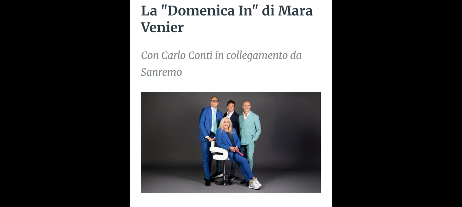 Con il Festival di Sanremo ormai alle porte, “Domenica In” – condotta da Mara Venier affiancata da Tommaso Cerno, Teo Mammucari ed Enzo Miccio, in onda Domenica 15 febbraio alle 14.00 su Rai1 in diretta dagli Studi Fabrizio Frizzi di Roma – si è aperta con un collegamento speciale con Carlo Conti, direttore artistico e conduttore della kermesse, che commenterà anticipazioni e retroscena a pochi giorni dal debutto.