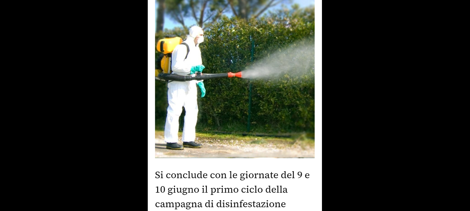 Con queste due giornate si completa il primo ciclo di interventi, ma l’attività di disinfestazione proseguirà con cicli successivi che interesseranno i mesi estivi.