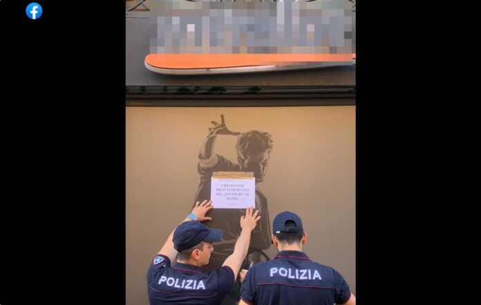 All’atto della notifica, come previsto dalla normativa, i poliziotti hanno affisso sull’entrata del locale il cartello “Chiuso con provvedimento del Questore”.
